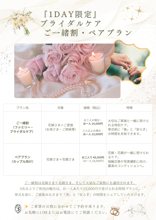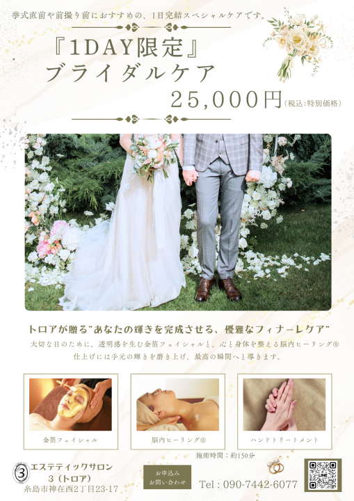 『1DAY限定ブライダルケア』— 大切な日のために、心と身体を整える贈り物 —